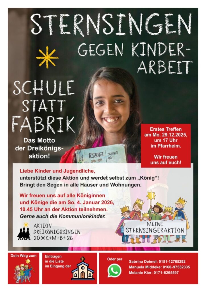 unterstützt diese Aktion und werden selbst zum König. Bringt den Segen in alle Häuser und Wohnungen. Wir freuen uns auf alle Königinnen und Könige die am Sonntag, 4. Januar 2026 an der Aktion teilnehmen.
